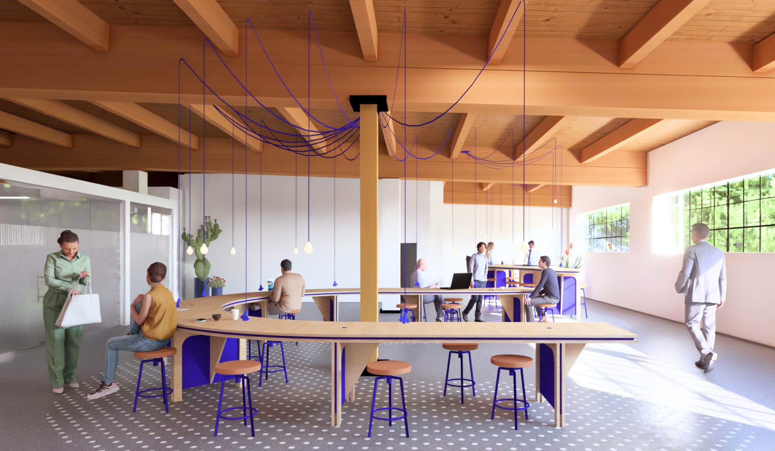 - Make production visible: designers are surrounded by the content they are designing, and visitors are invited into a setting that showcases the work as it happens.
